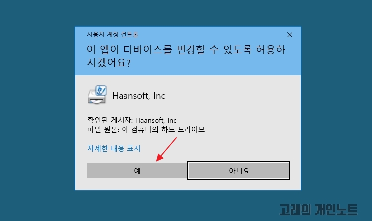 3. 사용자 계정 컨트롤 메시지가 나오면 예를 누릅니다.