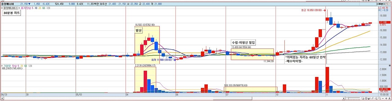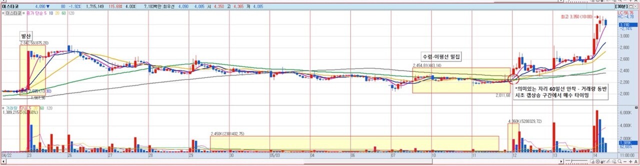 2.거래량 죽이면서 수렴 - 이평선 밀집