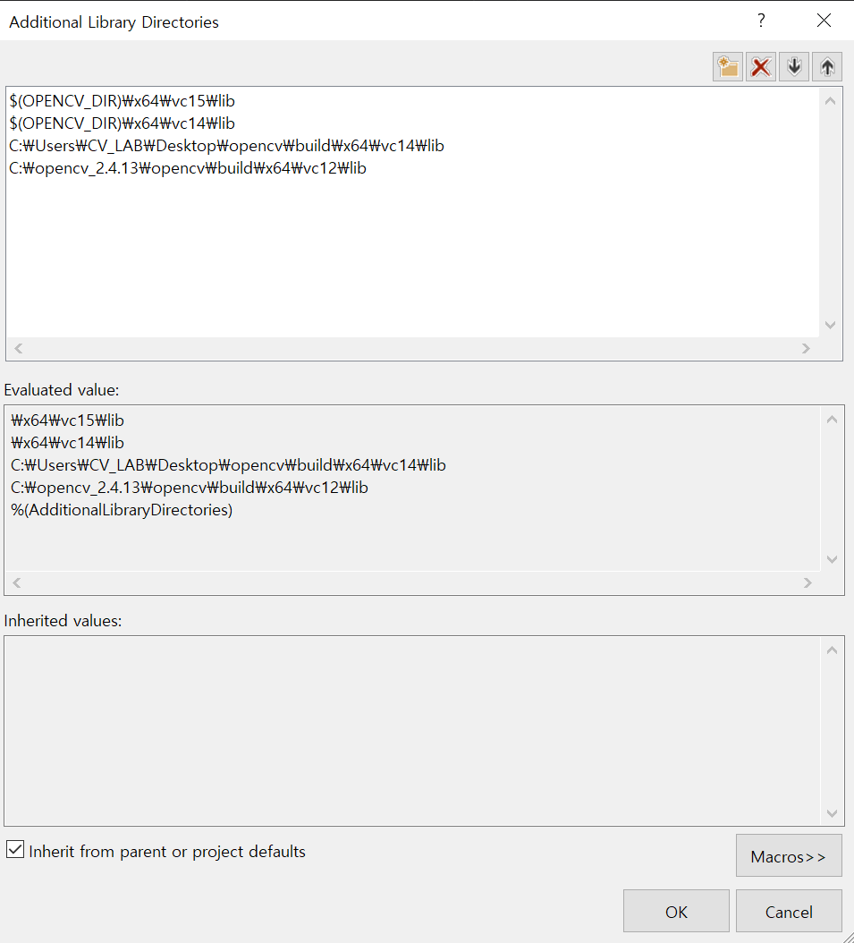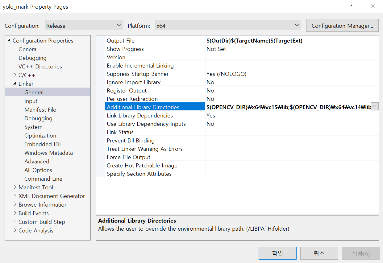 ※ opencv뒤에 붙은 숫자의 경우 본인 버전에 해당하는 숫자입니다. (ver 3.4.8 ->348)
