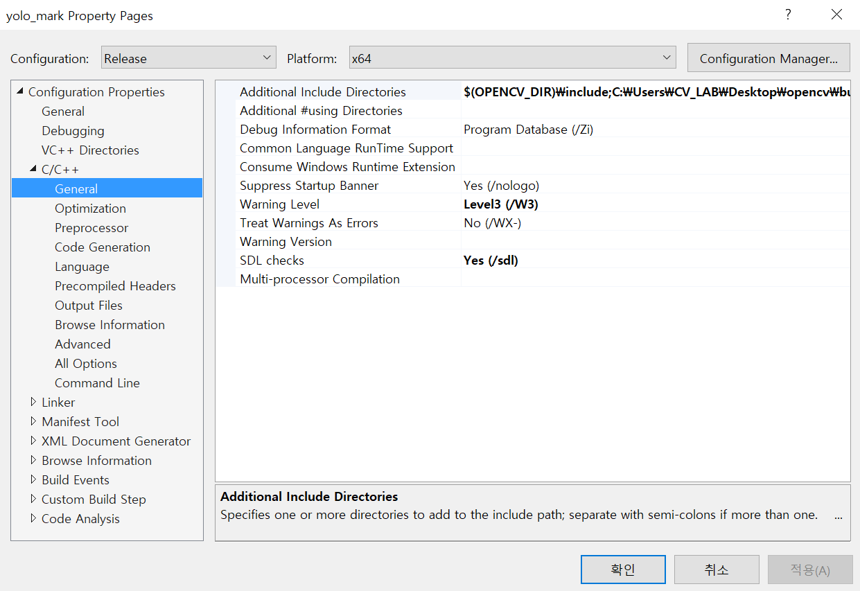 빌드가 성공했다면 Yolo_mark -> x64 -> Release -> yolo_mark_cmd를 실행합니다.