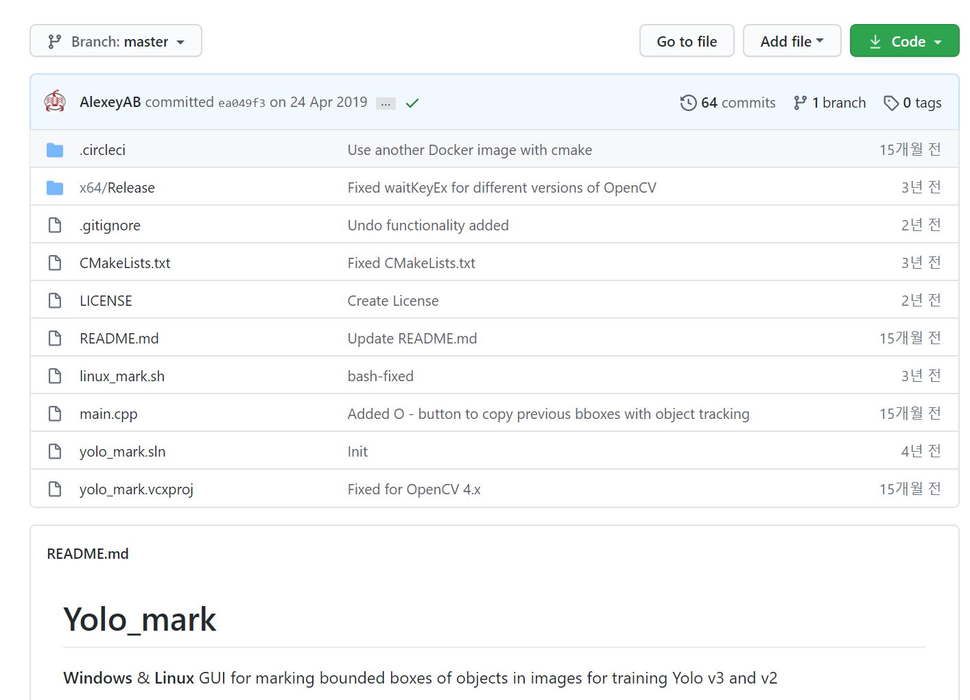 다운로드는 (https://github.com/AlexeyAB/Yolo_mark)에서 할 수 있습니다.