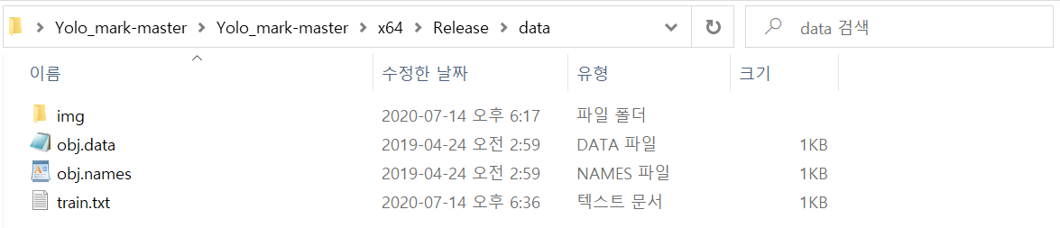 Release -> data에 돌아와 obj.names를 실행합니다.